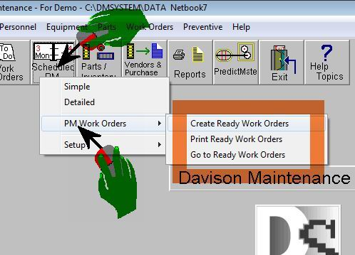 The PM Work Orders menu is a simple weekly routine.