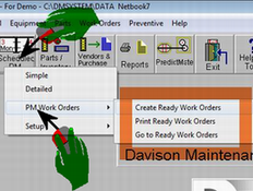 Click to see PM Work Order menu. |