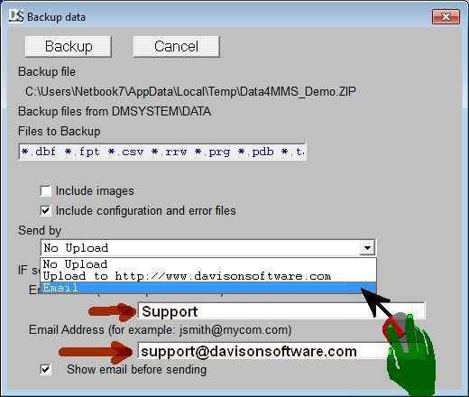 You can also send your data backup via email.
